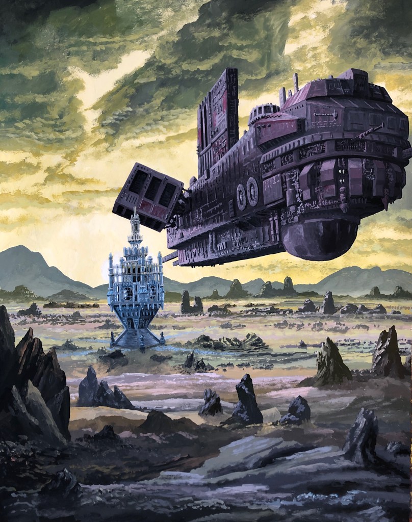 Book cover art for Wrath of Empire. This one is unusual in that all my book covers up to now have shown a scene relevant to the story, but this is a pure random sci-fi image. It combines elements (the precariously-balanced building, and the ship) that I’ve had in mind for a while. The composition has nothing to do with the story, though the menacing feel of the ship is fitting.