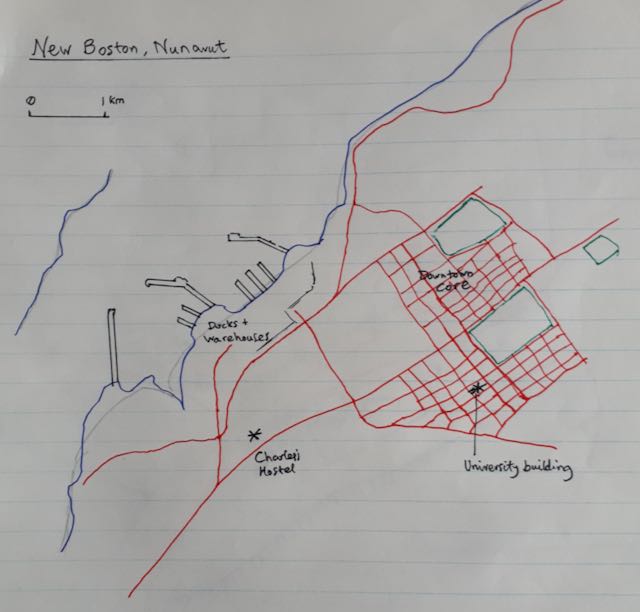 In Charles’s world, the ice sheets have vanished, leaving a navigable Arctic sea, and a Greenland that has only seasonal snow cover like much of North America today. One notable feature of this world is the likelihood of a sizeable inland sea at the heart of Greenland.